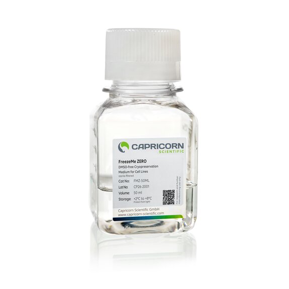 FreezeMe ZERO ist ein chemisch definiertes, DMSO-freies Kryokonservierungsmedium für die stabile und reproduzierbare Langzeitlagerung von Säugerzelllinien unter Minimierung freeze–thaw-bedingter biologischer Veränderungen.