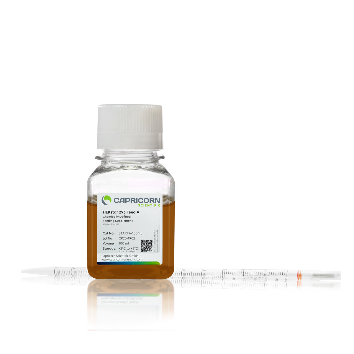 HEKstar 293 Feed A is a chemically defined, protein-free and animal component-free feeding supplement developed specifically for stable fed-batch expression processes with HEK293 suspension cultures.